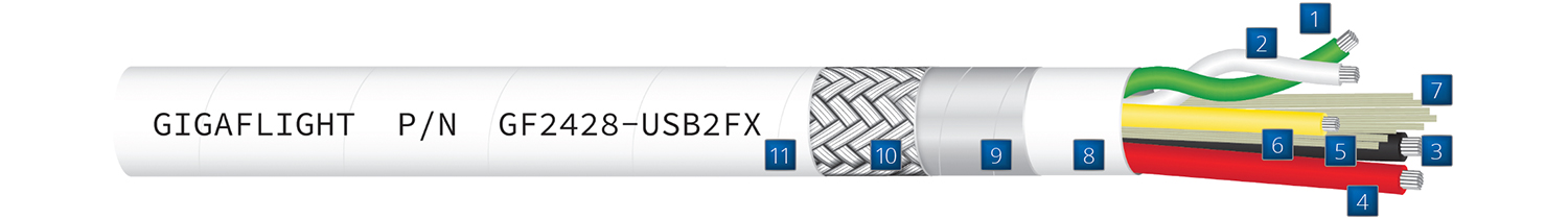 GigaFlight’s aerospace cables are designed to be resistant to Skydrol, will meet requirements of RoHS & REACH, & meets Federal Aviation Regulations 14 CFR part 25.869 (a)(4), Appendix F part I (a)(3).