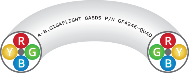 The GF424E-QUAD is available in different color jackets to accommodate your application. Please contact GIGAFLIGHT for details and availability.