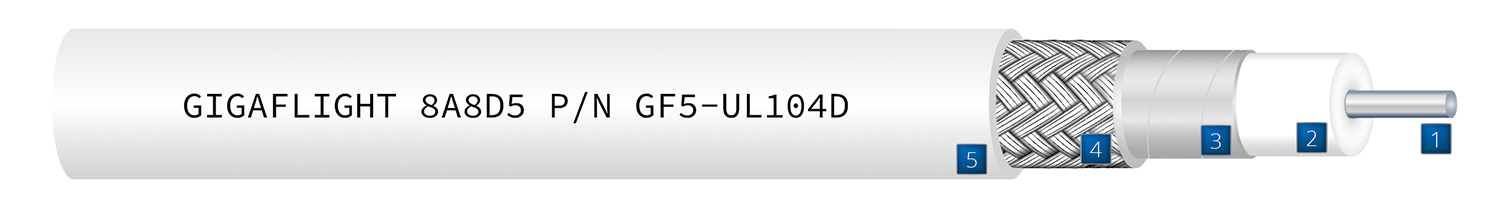 GIGAFLIGHT’s GF5-UL104D XLite coax cable is a suitable alternative for UH44193. Designed with high-end materials, this exceptionally lightweight 50 ohm coaxial cable delivers low loss performance while maintaining the shielding effectiveness necessary for today’s advancing technologies. The combination of a silver-plated copper flat spiral wrap inner shield and silver-plated, copper clad aluminum (SPCCA) braid provides ample protection without adding unnecessary weight.